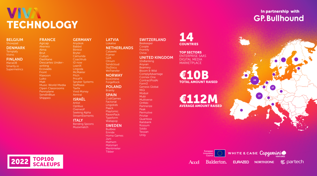 The list was compiled by Viva Technology, the biggest startup and tech event in Europe, in partnership with GP Bullhound, with the support of Capgemini Ventures, European Innovation Council, White & Case and with contribution from five of the world’s most reputable investment funds: Accel, Balderton, Eurazeo, Northzone and Partech.